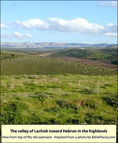 On the satellite map below, you can see that Lachish stood roughly midway between Ashkelon, the only port city in the area (Ashdod and Gaza being a bit inland), and Hebron in the highlands.